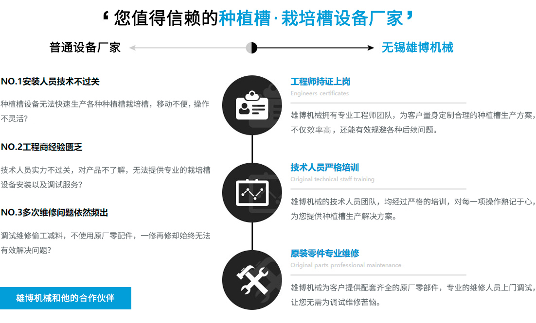 您在選擇雄博產(chǎn)品的同時(shí),也選擇無(wú)微不至的終身服務(wù)??筛鶕?jù)不同客戶(hù)實(shí)際需求進(jìn)行種植槽設(shè)備,栽培槽設(shè)備等的特殊工藝設(shè)計(jì)制造專(zhuān)業(yè)一對(duì)一售前/售后/技術(shù)咨詢(xún)指導(dǎo),享受更貼心/放心的設(shè)備使用體驗(yàn)。